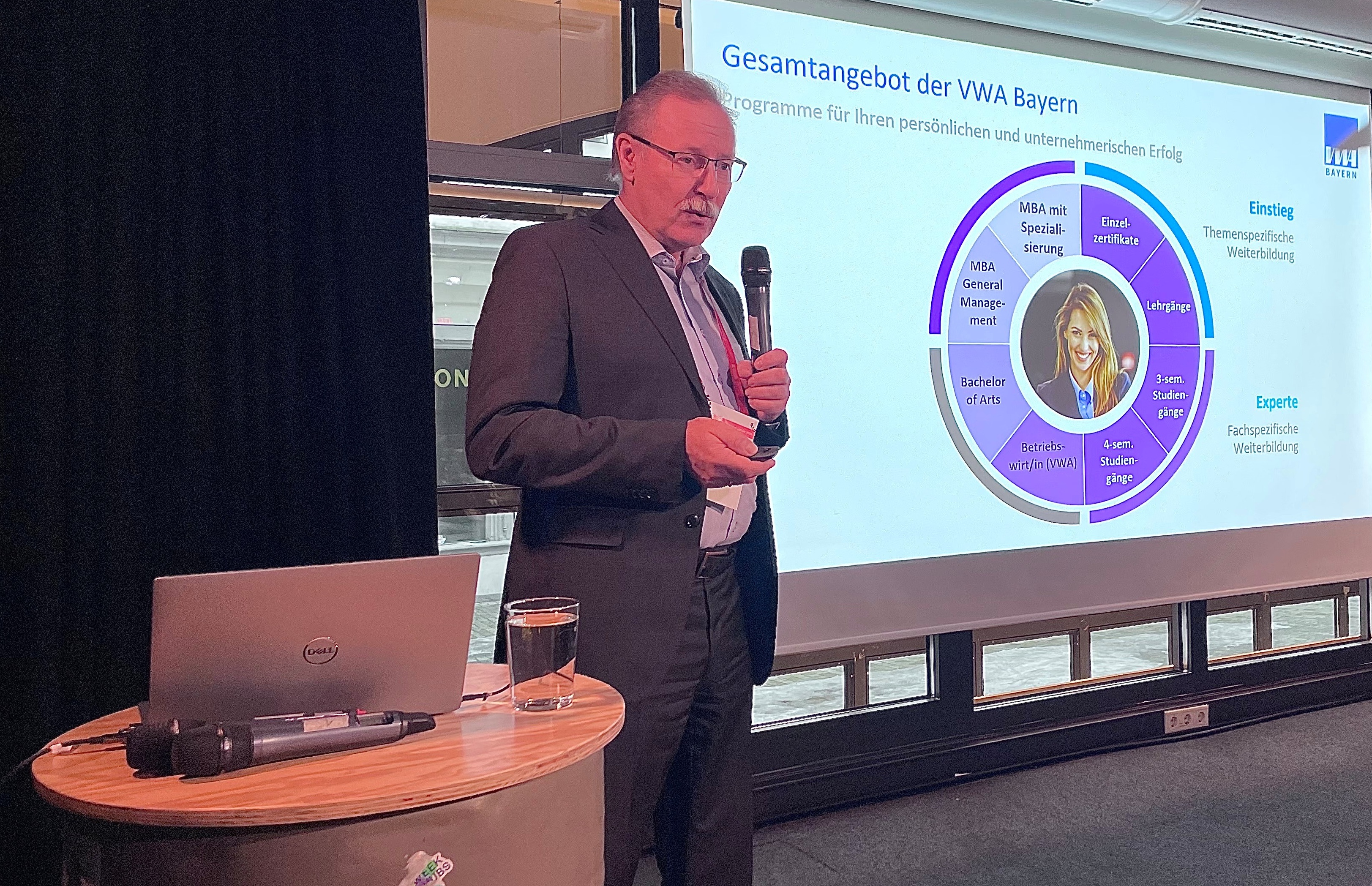 Dr. Köstlmeier bringt seine Expertise seit Jahren in unsere berufsbegleitenden Weiterbildungen und Studiengänge ein. Bei der VWA Bayern unterrichtet er das Modul „Grundlagen der Künstlichen Intelligenz“ sowie das Einsteiger- und Aufbauseminar „KI optimal nutzen“. Mit seiner praxisnahen Herangehensweise vermittelt er unseren Teilnehmerinnen und Teilnehmern nicht nur theoretisches Wissen, sondern auch konkrete Anwendungsmöglichkeiten von KI im Unternehmensalltag.